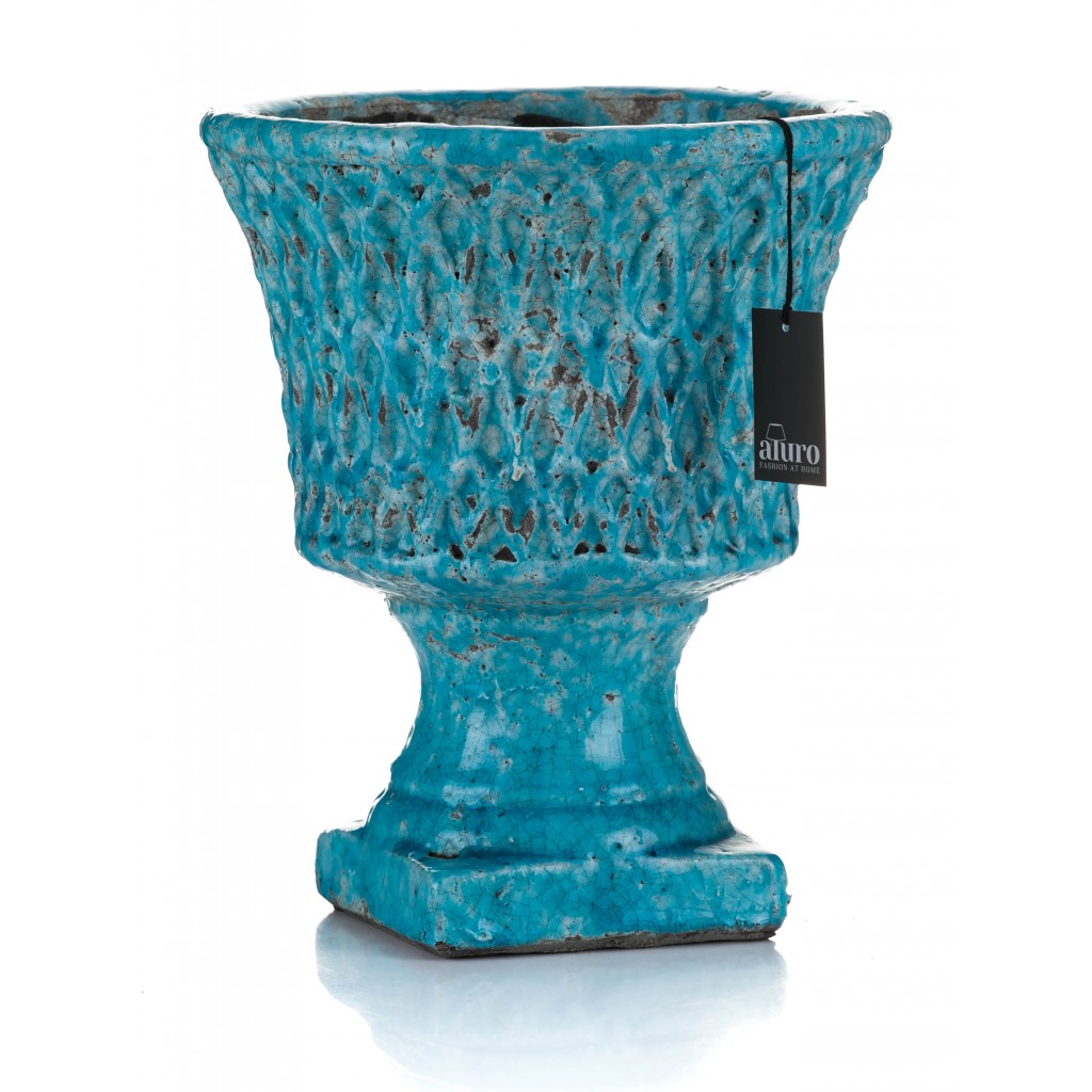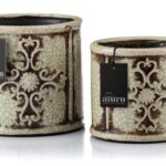 Donice są celowo postarzane poprzez liczne bruzdy, imitujące stare uszkodzenia oraz odpryski farby.