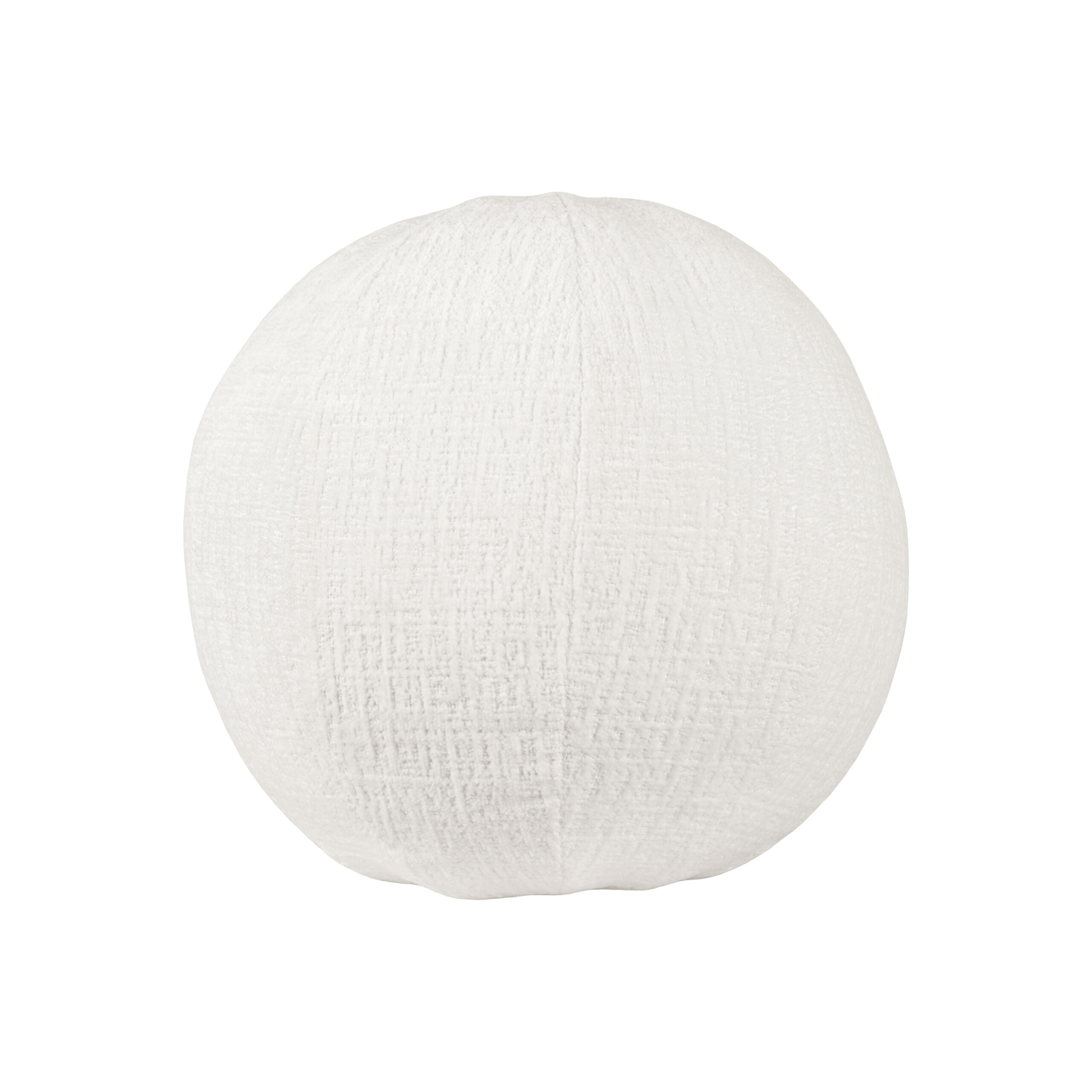 Elegancka poduszka wykonana z miękkiego, białego weluru w formie stylowej kuli. Jej nowoczesny, minimalistyczny design doskonale sprawdzi się jako oryginalna ozdoba sofy, fotela lub łóżka. Przyjemna w dotyku tkanina dodaje wnętrzu przytulności i klasy.
