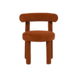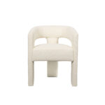Nowoczesne krzesło tapicerowane w kolorze jasnokremowym wykonane z najwyższej jakości tkaniny. Prosta forma oparta jest na modnych obłych kształtach a konstrukcja jest w pełni pokryta materiałem.