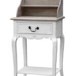 Stół okrągły w stylu prowansalskim w kolorze białym z przecieranym, ciemnobrązowym blatem. Produkt posiada jedną toczoną nogę.